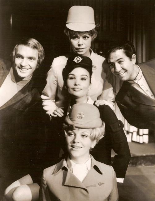 Foto: Links - Bob Franco, Damen von oben nach unten - Silvia Frank, Emely Schiller, Anke Syring, rechts - Vico Torriani in "Boeing-Boeing"