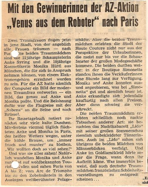 Artikel oben aus: "Abendzeitung München" vom 22. April 1966